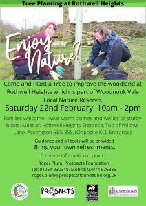 We will be planting trees and shrubs at Rothwell Heights which is at the top of Willows Lane in Accrington and part of Woodnook Vale Local Nature Reserve. The site is opposite the KCL Garage just before you reach the hamlet of Bedlam.