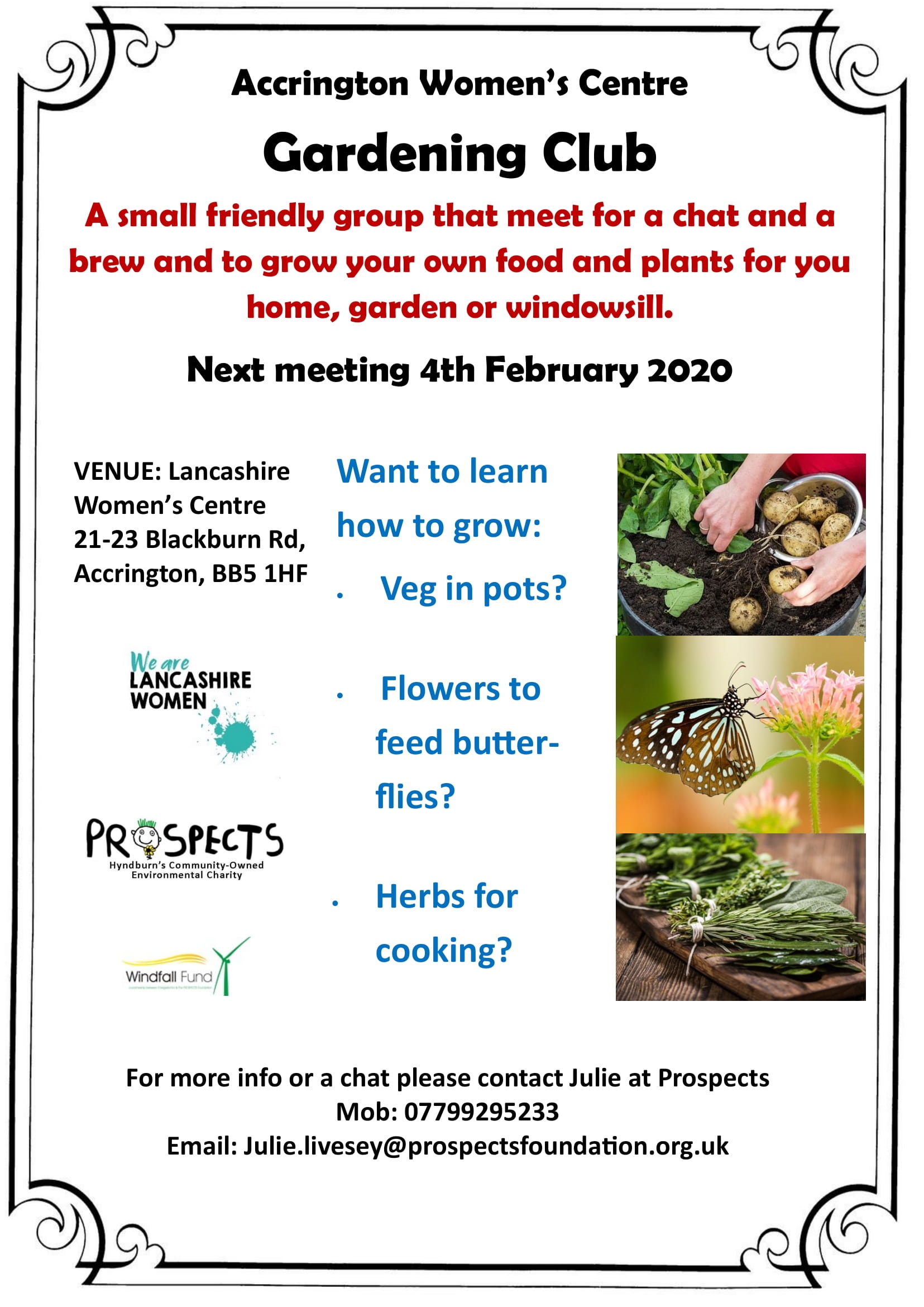 Join us, a small friendly group that meet for a chat and a brew at Accrington Womens’ Centre, to grow your own food and plants for the home/garden or windowsill.