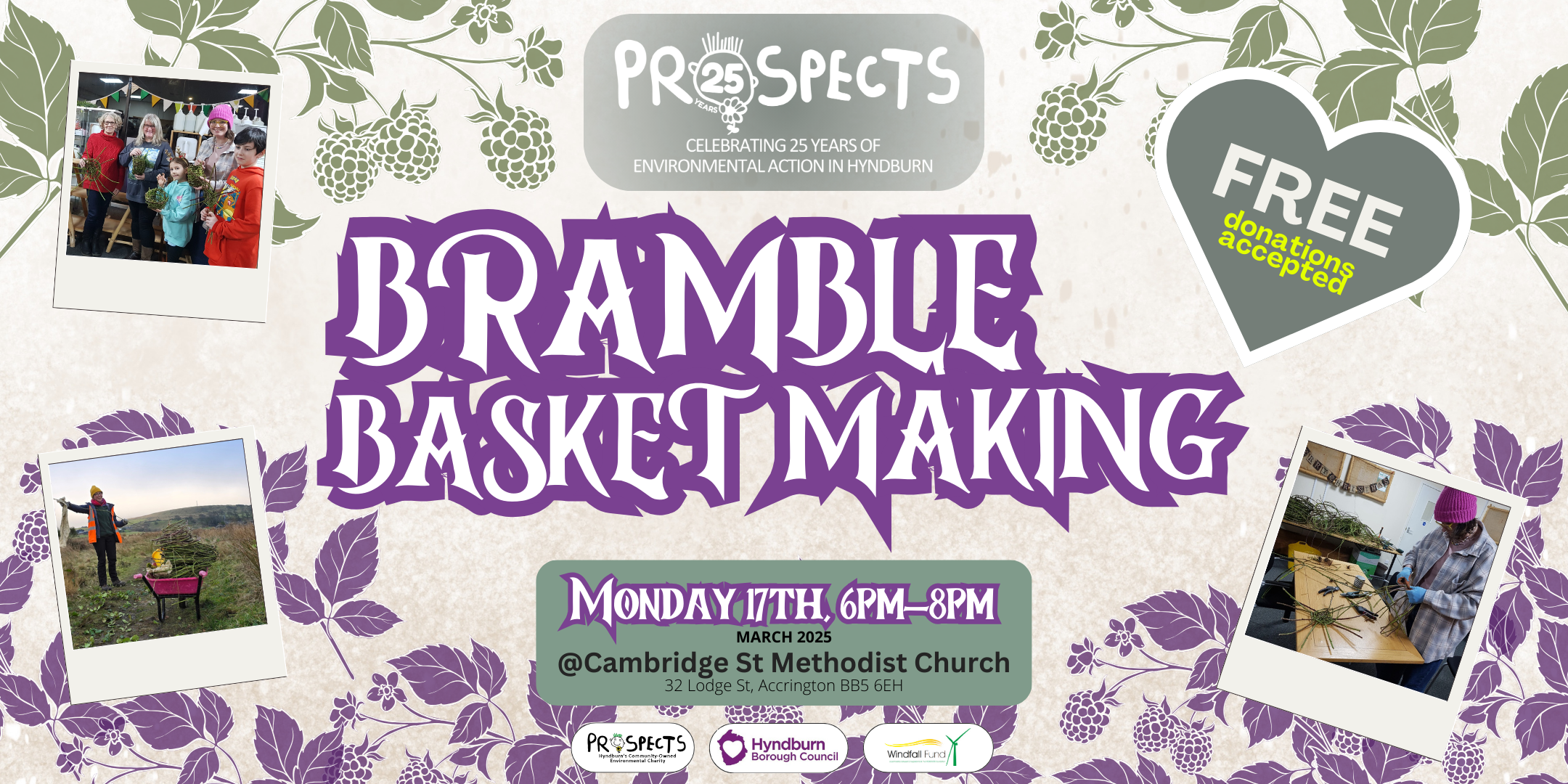 Using locally foraged bramble vines, learn how to make a simple basket for use as decoration, foraging, or a gift for Mother’s day! Join PROSPECTS for a free crafting event, whilst learning a bit about your local green spaces. Family friendly & perfect for beginners.