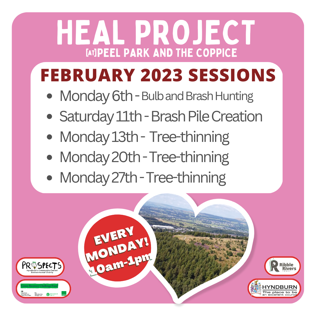 Join us for a weekly conservation volunteers session at Peel Park and the Coppice Local Nature Reserve, every Monday from 10am – 1pm. We’ll be carrying out heathland, grassland and woodland management work throughout the year. Come along and learn new skills, meet people, keep fit and help wildlife! To book a place or find out more email robert.gabryszak@prospectsfoundation.org.uk, telephone 01254 230348 or call into the Prospects office at 54 Broadway, Accrington.