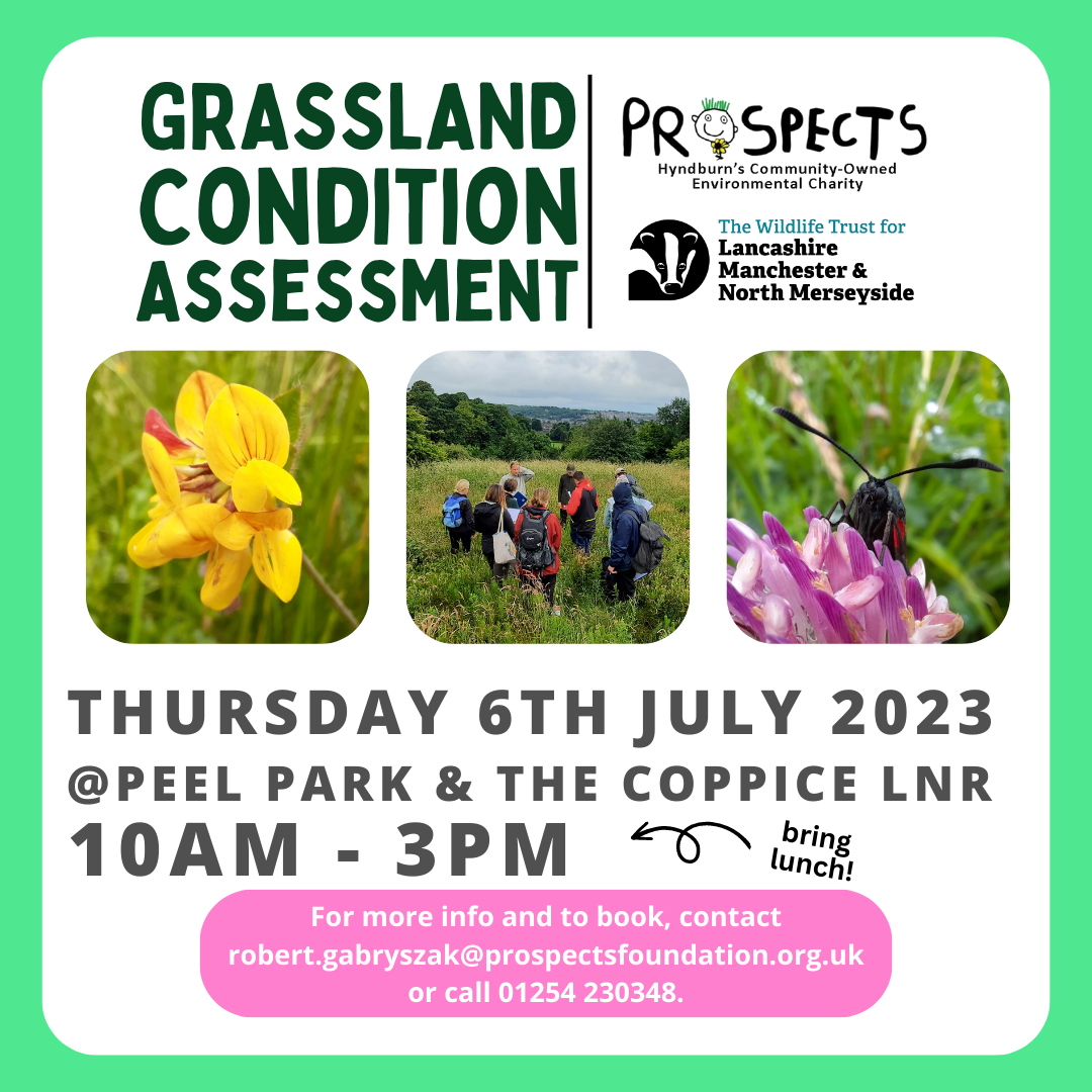 Join us for a free training session at Pleck Meadows (Peel Park and the Coppice LNR) and learn how to survey and assess the condition of grassland sites.  Grassland condition assessments can be used to track the condition of a grassland, especially in relation to conservation management targets.  Assessments can also be used to highlight work required to improve a grassland to a more favourable status.  Training provided by Ben Hargreaves from the Lancashire Wildlife Trust.