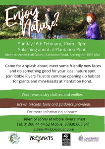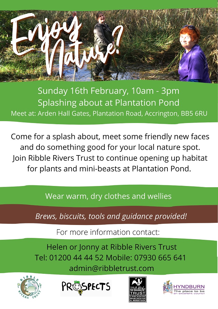 Meet at Arden Hall Gates, Plantation Road BB5 6RU. All tools will be provided. Please bring lunch to keep you going and a pair of wellies.