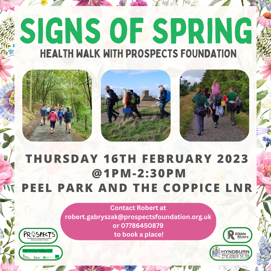 Join us to explore the signs of spring at Peel Park and the Coppice Local Nature Reserve on Thursday 16th February from 1pm – 2:30pm. Come along, keep fit, experience nature, and meet new people!