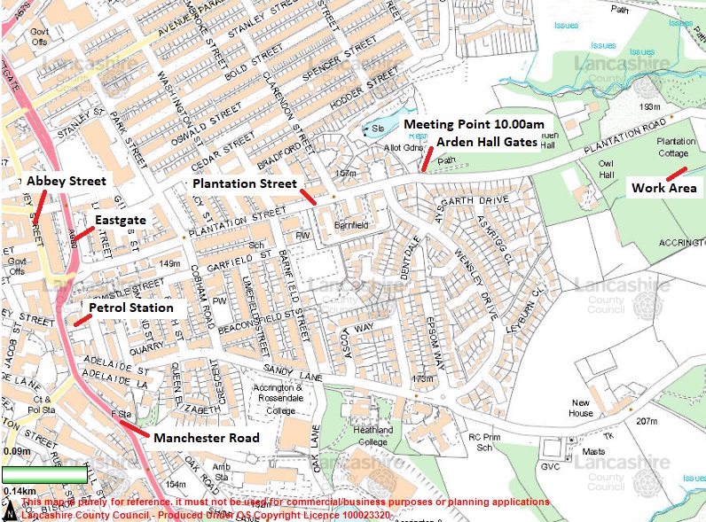 Meet at the gates to Arden Hall which is at the top of Plantation Street in Accrington at 10.00am. The gates are just after the turning for Wensley Drive. The nearest postcode is BB5 6RU.