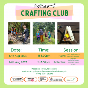 Join us for the return of Crafting Club for the summer holidays! During the two sessions this August, we will be learning about moths and butterflies, creating free moth decorations and crafting a butterfly house! Perfect for kids 5 and up (children must be accompanied by an adult.) Booking required - contact Robert: robert.gabryszak@prospectsfoundation.org.uk to […]