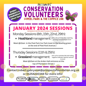 Join us for a weekly conservation volunteers session at Peel Park and the Coppice Local Nature Reserve, every Monday and Thursday from 10am - 1pm. We'll be carrying out conservation work to benefit pollinators throughout the year as a part of our Pollinator Networks project! Come along and learn new skills, meet people, keep fit, […]