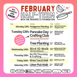 Looking for something for the kids to do during the February half term? PROSPECTS has a plethora of events and activities for all ages. Monday 12th Feb (10am-1pm) - Hedgerow/Tree-planting @Peel Park & the Coppice LNR, Accrington (Contact helen.earnshaw@prospectsfoundation.org.uk) Tuesday 13th Feb (11am-2pm) - Pancake Day Crafting Club @Woodnook Community Garden, Accrington (Contact robert.gabryszak@prospectsfoundation.org.uk) Tuesday […]