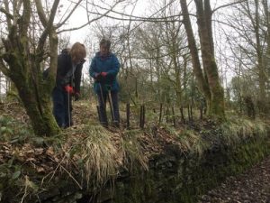 We had a Saturday session on 7th March as part of the Hyndburn Local Nature Reserve Weekend Volunteering Programme. A group of volunteers worked on the old hedge along Plantation Road which is part of the Peel Park & Coppice Local Nature Reserve. The hedge was in need of rejuvenation so some of the hedge was cut down to allow new growth to develop from the roots of the cut trees which will be healthier and thicker. Where there were gaps in the hedge these were planted up with mainly Hawthorn but also some Hazel and Crab Apple. Hopefully once these new plants have grown and the growth from the cut trees has developed then we should see a thicker, healthier hedge which will be an improved habitat for the local wildlife.