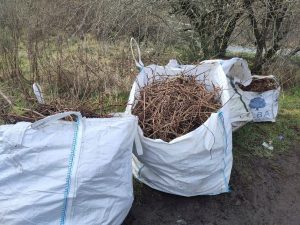We filled 3 large builders-sacks with cut material (and 2 smaller sacks), this still only amounted to half of the material that was onsite. After one more session all of the material should be fully removed.